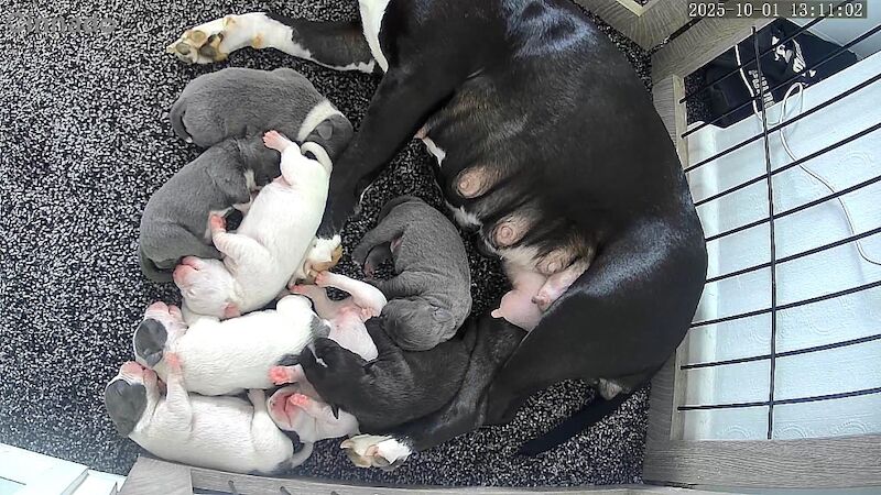 We have 7 Absolutely beautiful staffys pups in a mixture of stunning coloursWe have both parents who are full bred staffys mum is black and dad is blue