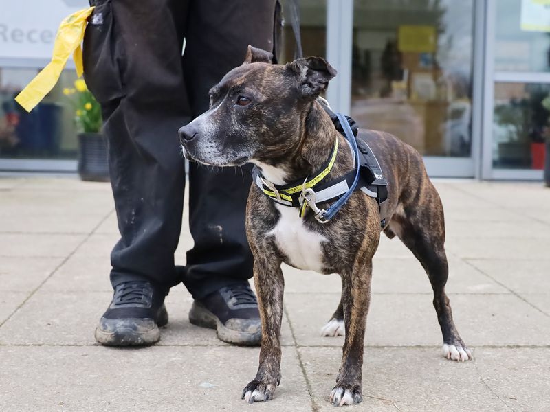 Rolo is a super sweet 7yr old Staffy Crossbreed. She will be fine with high-school aged kids who will be ok around a bubbly lass like her, she will forget her size and quite often try to be on your lap for snuggles! She doesn't want to share her home with any other pets as she prefers her human company. She can be worried being close to dogs so will need walking in areas where she can have her own space. She'll needs someone around all the time to properly settle her in and then building up the time she is left at her pace.