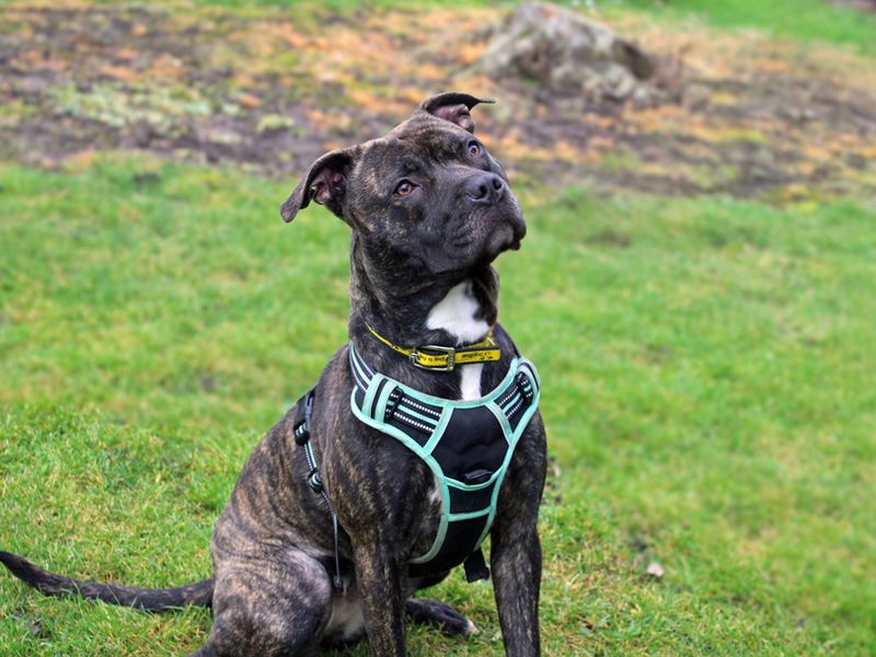 Ness's ideal home Ness can walk with other Dogs but doesn't want to share a home with one, but she can live with children aged 10 and over. She is house trained and can be left alone for a couple of hours once settled in. Ness needs a secure garden and CANNOT be let off lead around livestock. Could you be Ness's perfect match? Ness is a very bright dog who loves to learn and